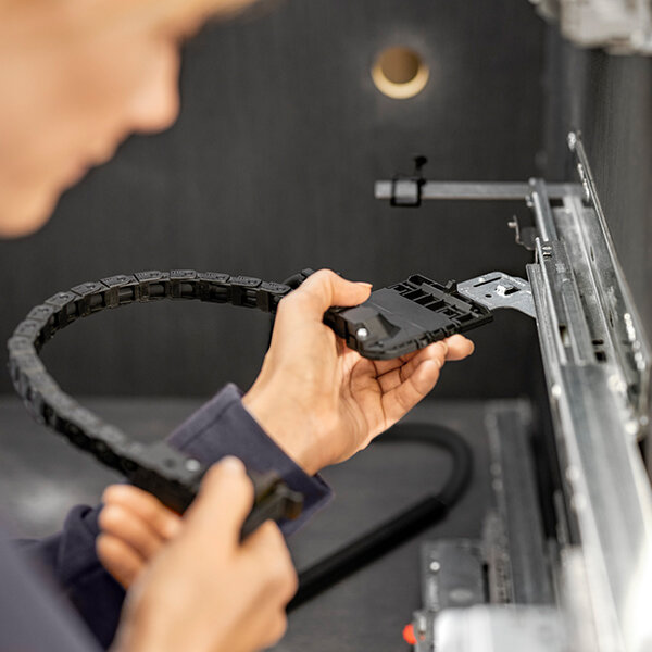 Voor het installeren van de kabelgeleider is geen gereedschap nodig, u sluit hem gewoon aan met de TIP-ON BLUMOTION eenheid.