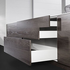 De Vionaro lade van Grass is niet alleen geschikt als besteklade maar ook als voorraadlade in de keuken. De lades zijn leverbaar in diverse hoogtes en daardoor bruikbaar in de keuken, badkamer, garderobekast of dressoir. de Mogelijkheden zijn eindeloos. De ladehoogtes varieren van 63 tot 249 mm. Voor de breedte is iedere maat mogelijk tot 1200 mm.