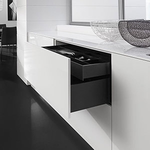 De Grass Vionaro lades zijn aan de binnenkant recht en strak uitgevoerd. De Vionaro lade is standaard voorzien van soft-close. Uiteraard is het ook mogelijk te kiezen door een druksluiting, oftewel tipmatic.