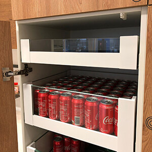 Belangrijk  verschil met de andere lades uit de Blum serie is dat de binnenkant van de lades strak en recht  zijn en dus geen ronde kanten meer hebben.