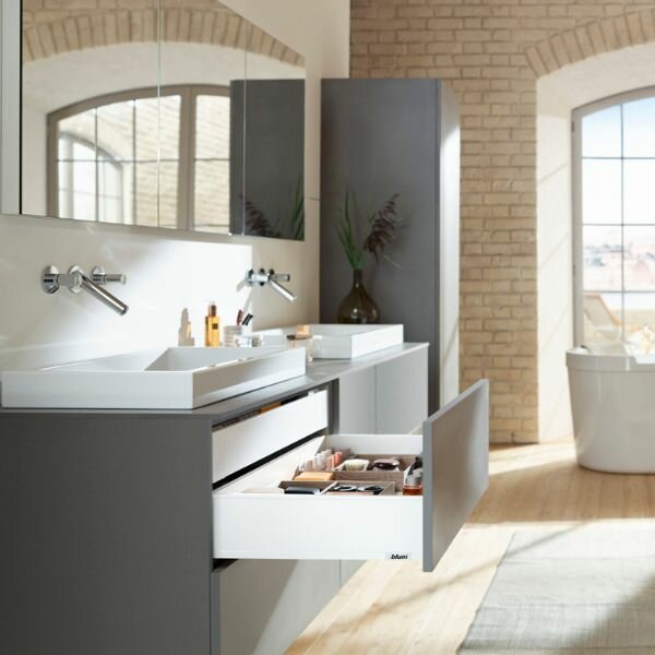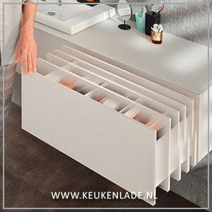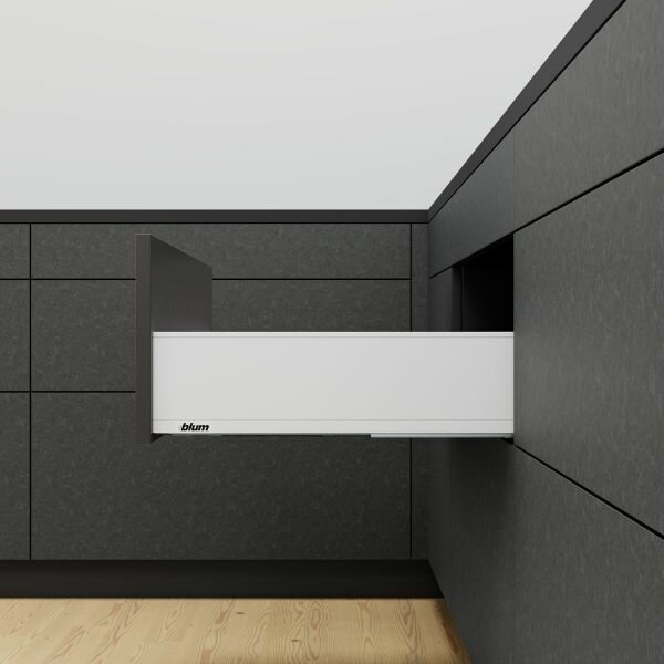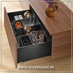 Belangrijk verschil met de andere lades uit de Blum serie is dat de binnenkant van de lades strak en recht zijn en dus geen ronde kanten meer hebben.