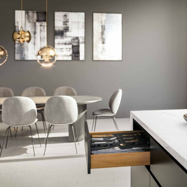 De TA'OR BOX lade heeft een revolutionair boxsysteem als het gaat om houten lades. De TA'OR BOX in Eikenfineer is een mooie aanvulling in ieder interieur. De TA'OR BOX is verkrijgbaar in vijf verschillende hoogtes en 18 verschillende dieptes, zodat vele combinatie mogelijk zijn. De Blum MOVENTO geleiders zijn standaard uitgerust met BLUMOTION (soft-close), maar ook beschikbaar met TIP-ON en BLUMOTION (openen door aandrukken en langzaam sluiten) voor greeploze verwerking. De TA'OR BOX lades zijn ook verkrijgbaar als binnenlade, voor het plaatsen achter een deur of front van een andere lade.