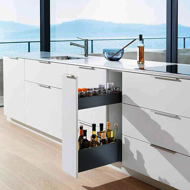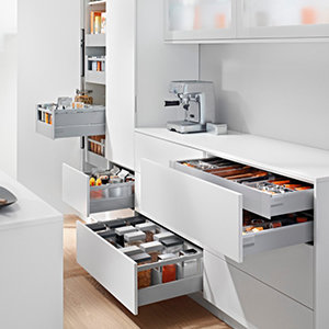 U kunt kiezen uit de Blum TANDEMBOX antaro, de Blum LEGRABOX lades en de Blum MERIVOBOX lades.