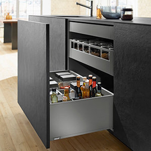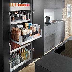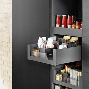 Een Blum LEGRABOX lade kan ook toegepast worden om planken in een kast te vervangen door lades waardoor alle spullen in de kast veel makkelijker te bereiken zijn. Wij praten dan over binnenlades. Deze binnenlades kunnen ook toegepast worden bij lades met een hoog front waar nog ruimte is voor een extra lade. Deze lades zijn toepasbaar bij nieuw te maken meubels, maar ook zeer geschikt bij renovatie van de keuken. Binnenlades zijn leverbaar met een voorkant met reling, half glas of hoog glas.