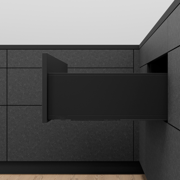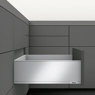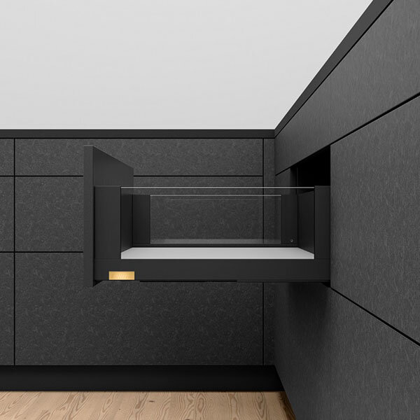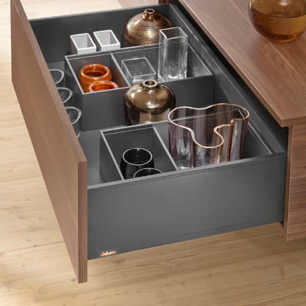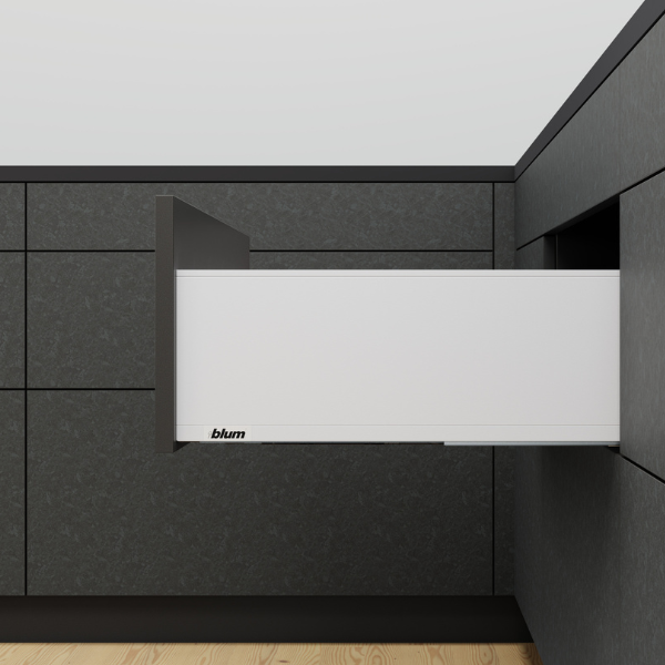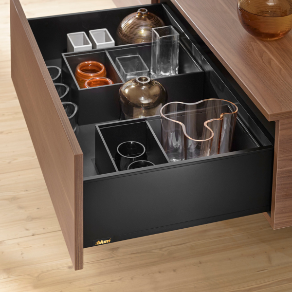 Belangrijk verschil met de andere lades uit de Blum serie is dat de binnenkant van de lades strak en recht zijn en dus geen ronde kanten meer hebben.