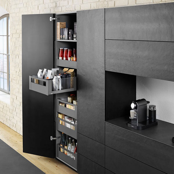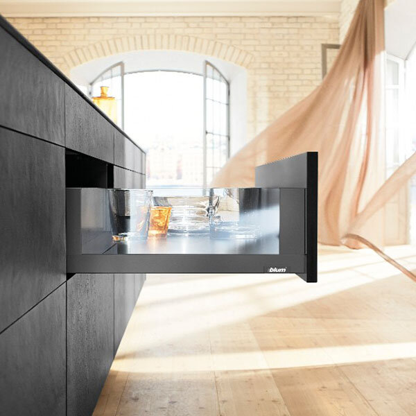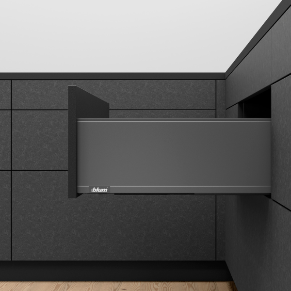Blum LEGRABOX keukenlade met TIP-ON en BLUMOTION, inbouwhoogte van 192,5 mm.